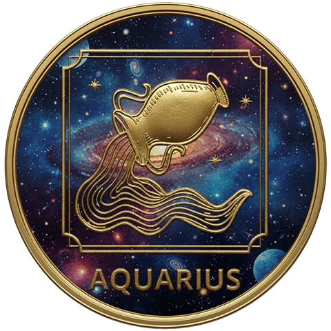 水瓶座(みずがめざ)をイメージした星座コイン。1月20日 ~ 2月18日生まれを象徴する。
