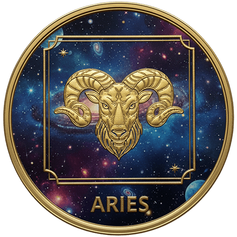 牡羊座(おひつじざ)をイメージした星座コイン。3月21日〜4月19日生まれを象徴する。