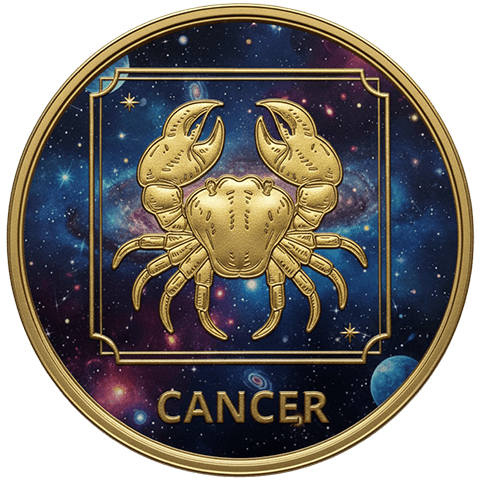 蟹座(かにざ)をイメージした星座コイン。6月21日 ~ 7月22日生まれを象徴する。
