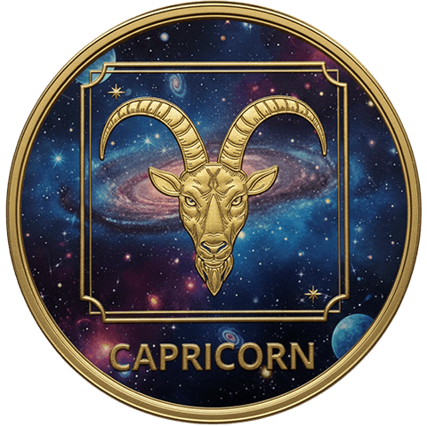 山羊座(やぎざ)をイメージした星座コイン。12月22日 ~ 1月19日生まれを象徴する。