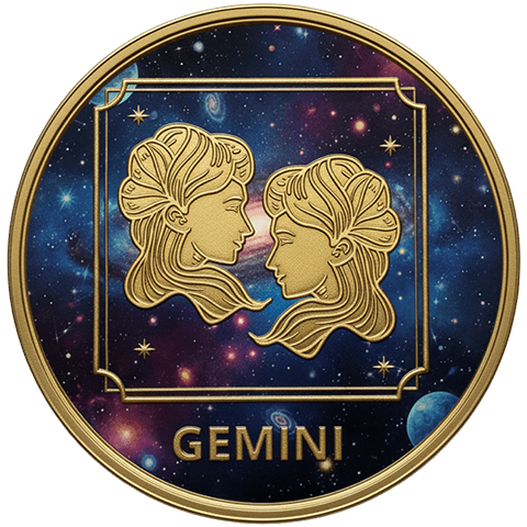 双子座(ふたござ)をイメージした星座コイン。5月21日 ~ 6月20日生まれを象徴する。