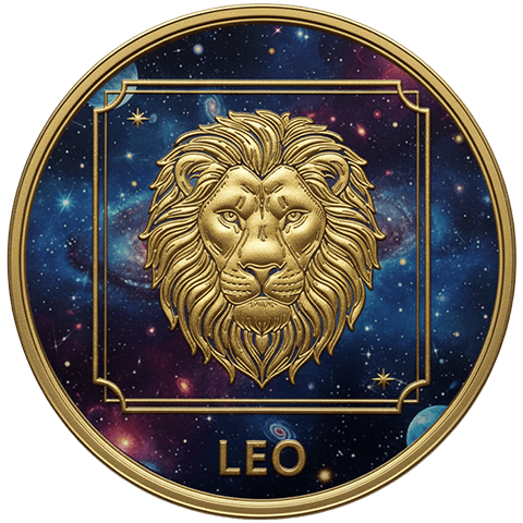 獅子座(ししざ)をイメージした星座コイン。7月23日 ~ 8月22日生まれを象徴する。