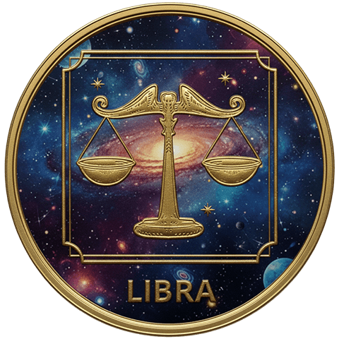 天秤座(てんびんざ)をイメージした星座コイン。9月23日 ~ 10月22日生まれを象徴する。