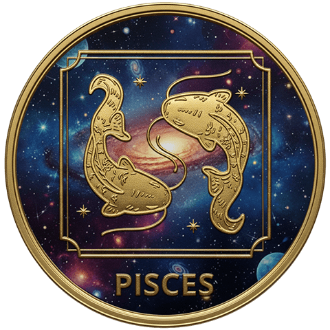魚座(うおざ)をイメージした星座コイン。2月19日 ~ 3月20日生まれを象徴する。