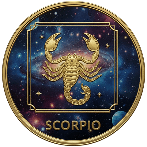 蠍座(さそりざ)をイメージした星座コイン。10月23日 ~ 11月21日生まれを象徴する。