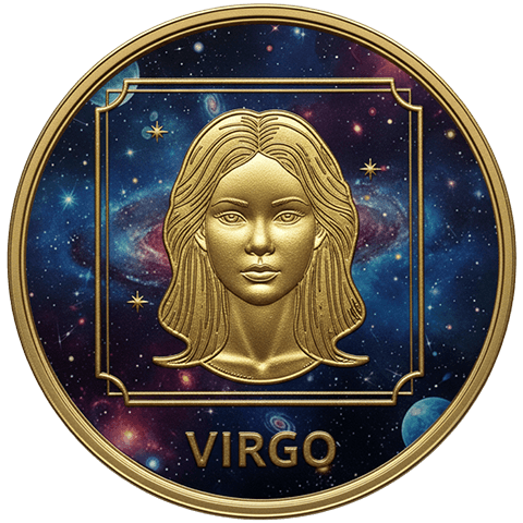 乙女座(おとめざ)をイメージした星座コイン。8月23日 ~ 9月22日生まれを象徴する。